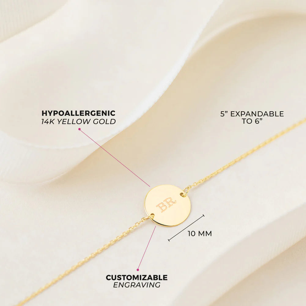 Say My Name Engravable Gold Disc Bracelet