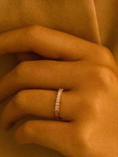 14K Yellow 1/3 CTW Baguette and Round Diamond Anniversary Band
